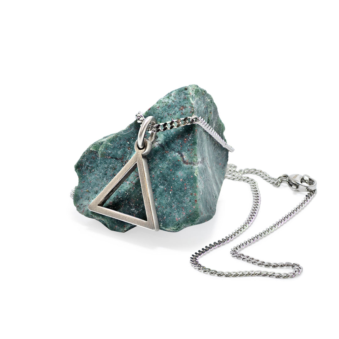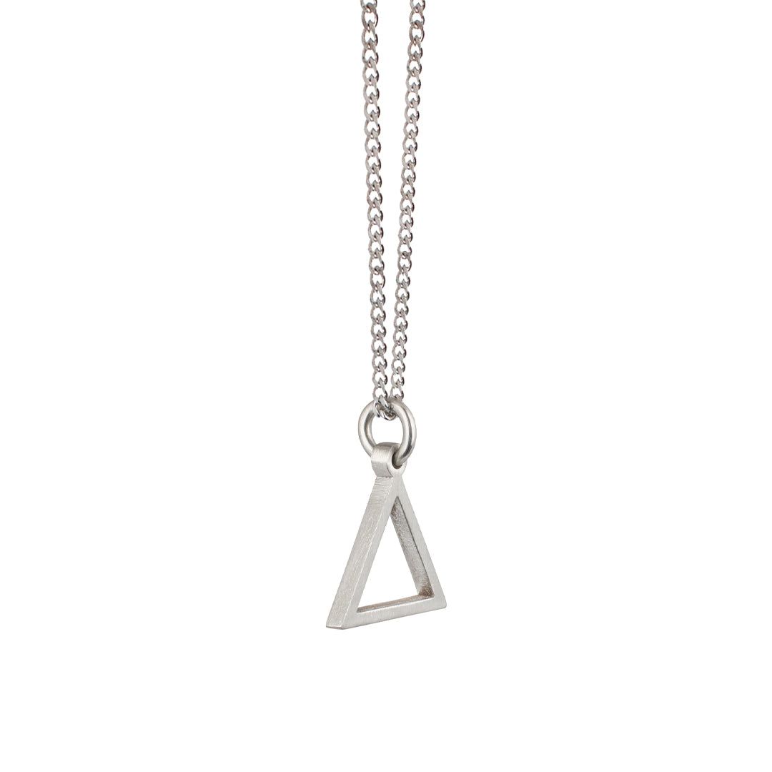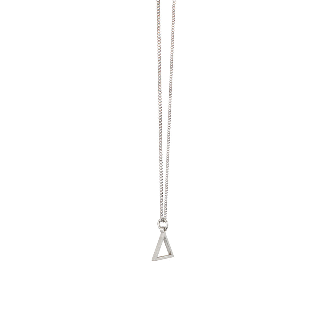 Our sleek, open-frame Triangle Necklace — simple, geometric, and effortlessly modern.