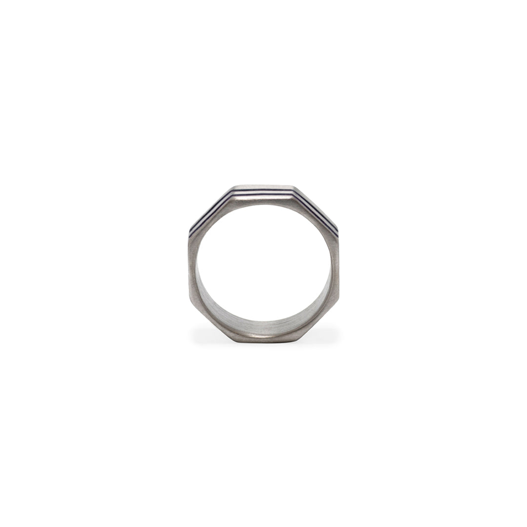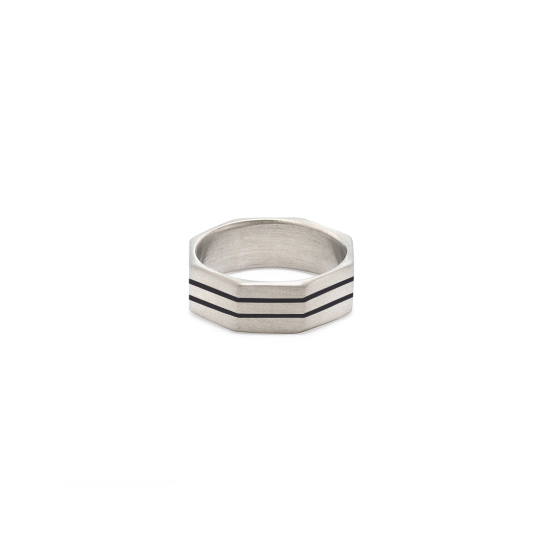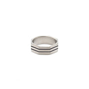 Parallel Line Engraved Octagon - Silver Edition Ring